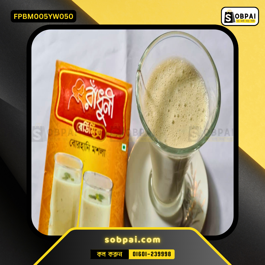 Radhuni Borhani Masala 50g is your ultimate choice for crafting the authentic flavor of Borhani, the traditional yogurt-based drink that complements every Bengali feast. This exquisite blend of premium spices is specially formulated to bring out the rich, tangy, and aromatic essence of Borhani. With Radhuni, a trusted brand in the kitchen for years, you can be confident that every sip will deliver unmatched quality and flavor.