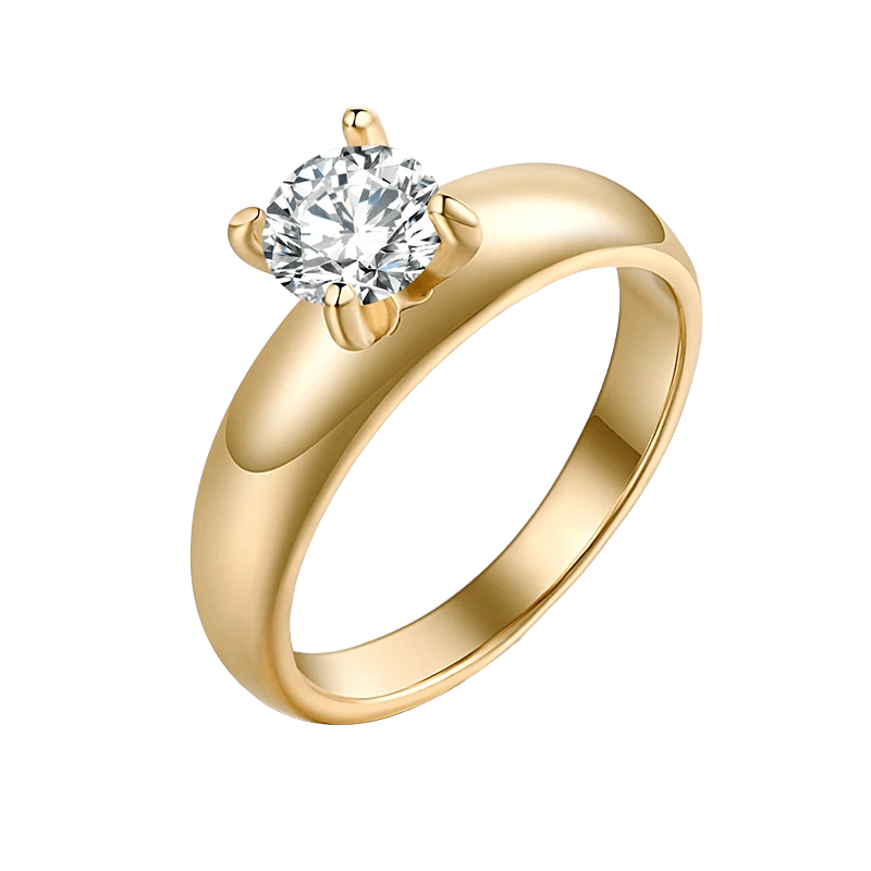 - Stone: 6.5mm round Moissanite that offers brilliance comparable to diamonds.