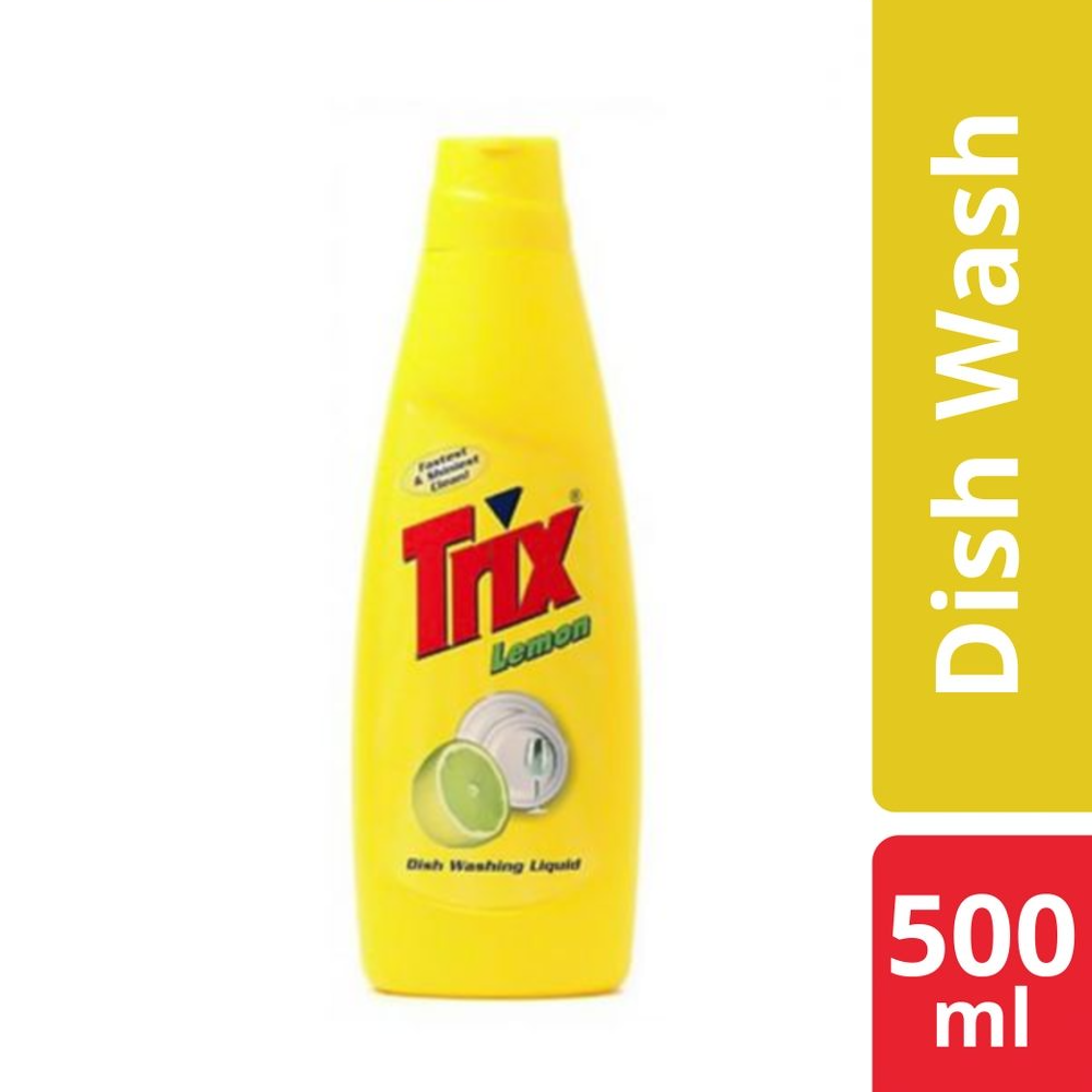 Trix dishwashing liquid gives you the fastest and shiniest scratch-free clean. Its power-rich thick foam quickly works through the toughest of grease stains, oily dish clean and unseen food residue bringing your dishes to their incredible best; fresh, shiny and sparkling clean. It is hard on grease but soft on hands. It is applicable for multiple surfaces. It also protects from germs. Available in Lemon fragrance.